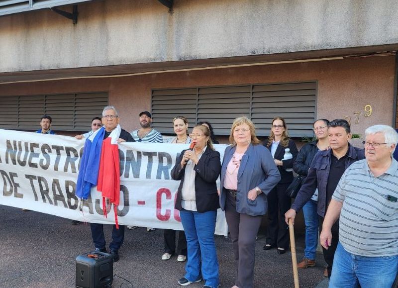 En apoyo a la causa, la presidenta de la Confederación de la Clase Trabajadora (CCT), María Stela Silva Invernizzi, y la secretaria de SINGRUCOG, Sara Rojas, se sumaron a la manifestación de los trabajadores para expresar su descontento.